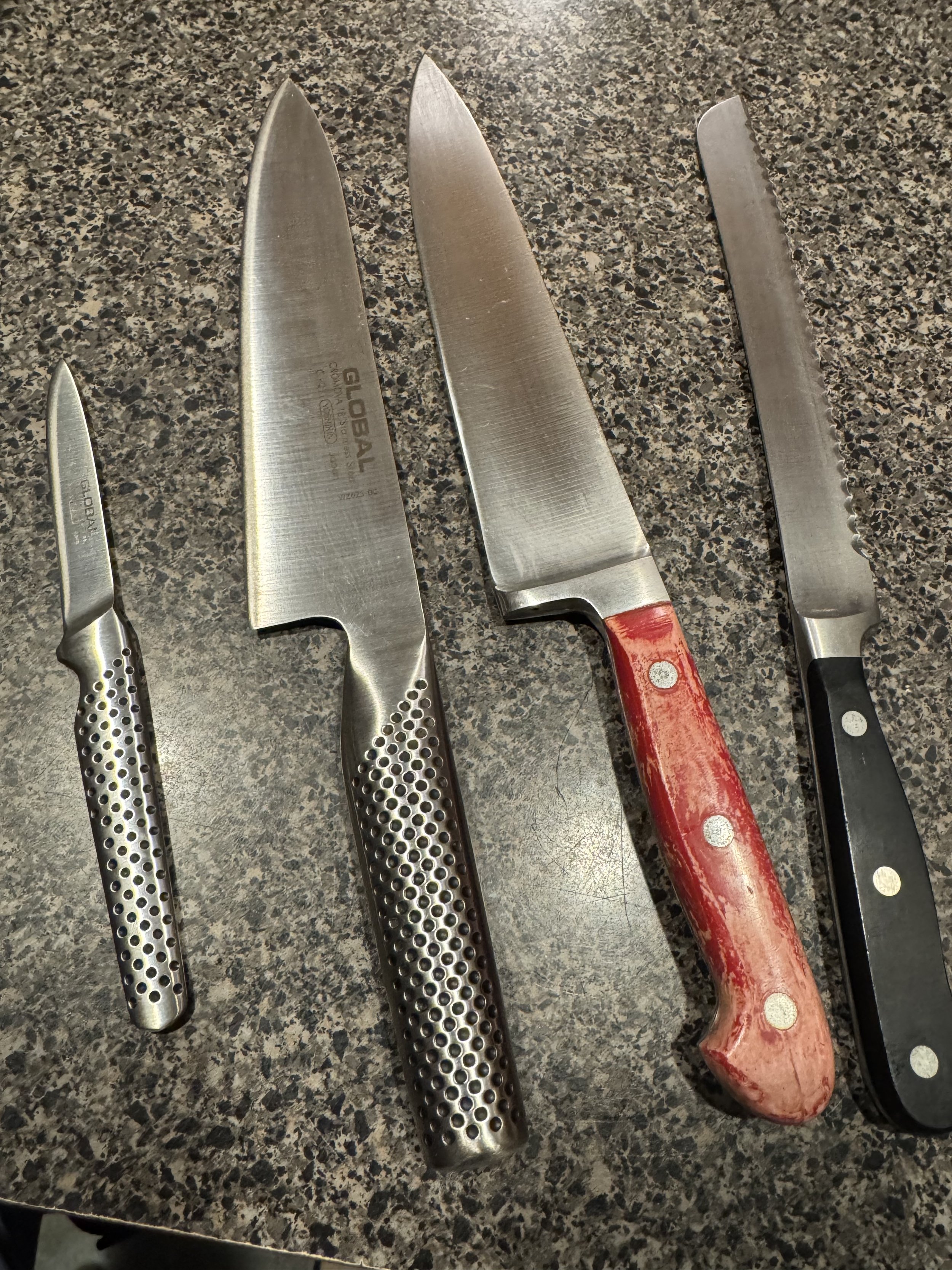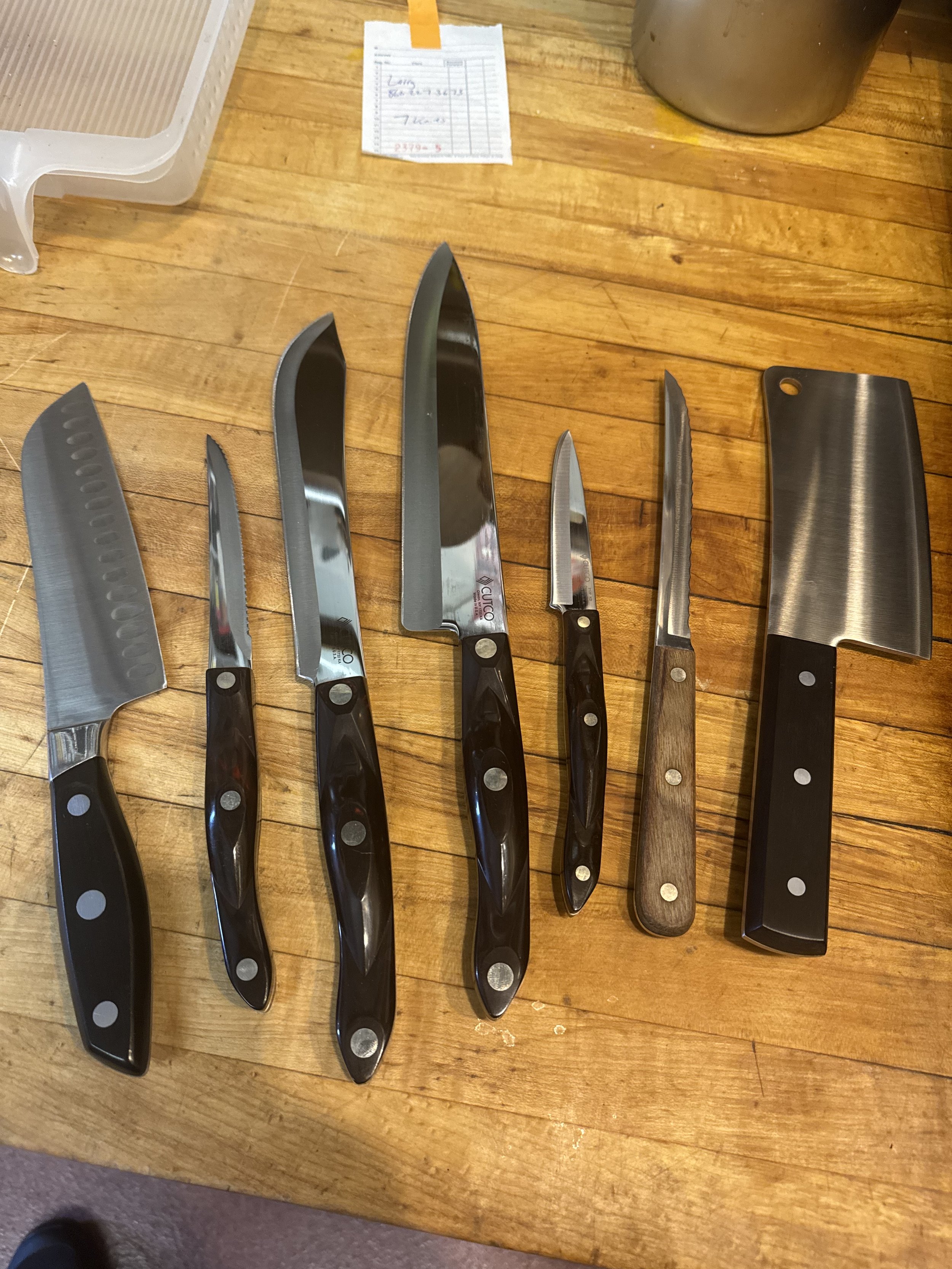 Be it for your next big family occasion, or just for a light tune up, everybody feels and cooks better in the kitchen with sharp knives!