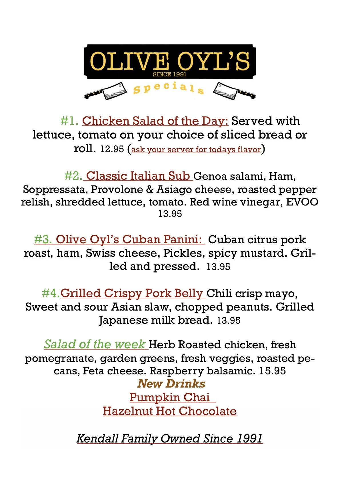 Served with Jen’s famous Homemade Cookies, Potato Chips & Seasonal Fresh Fruit.