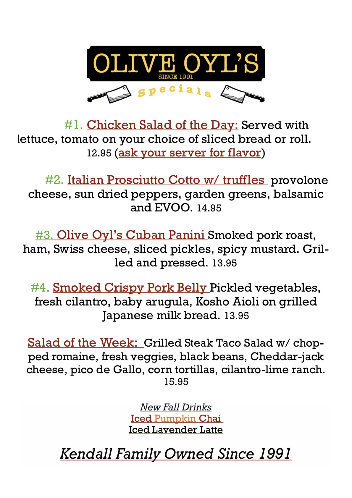 Our Menus